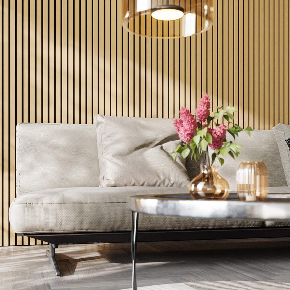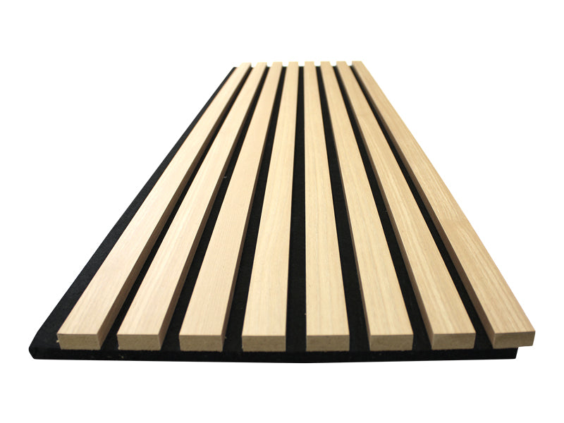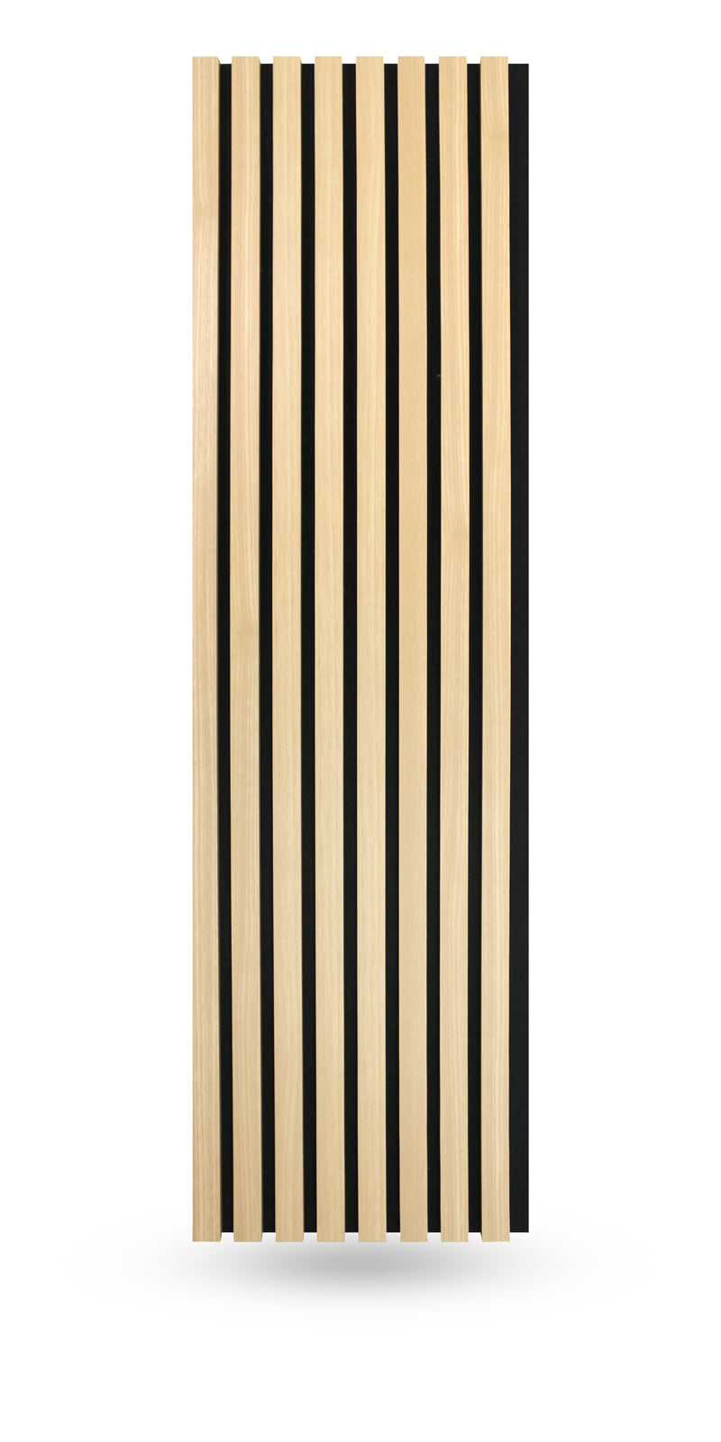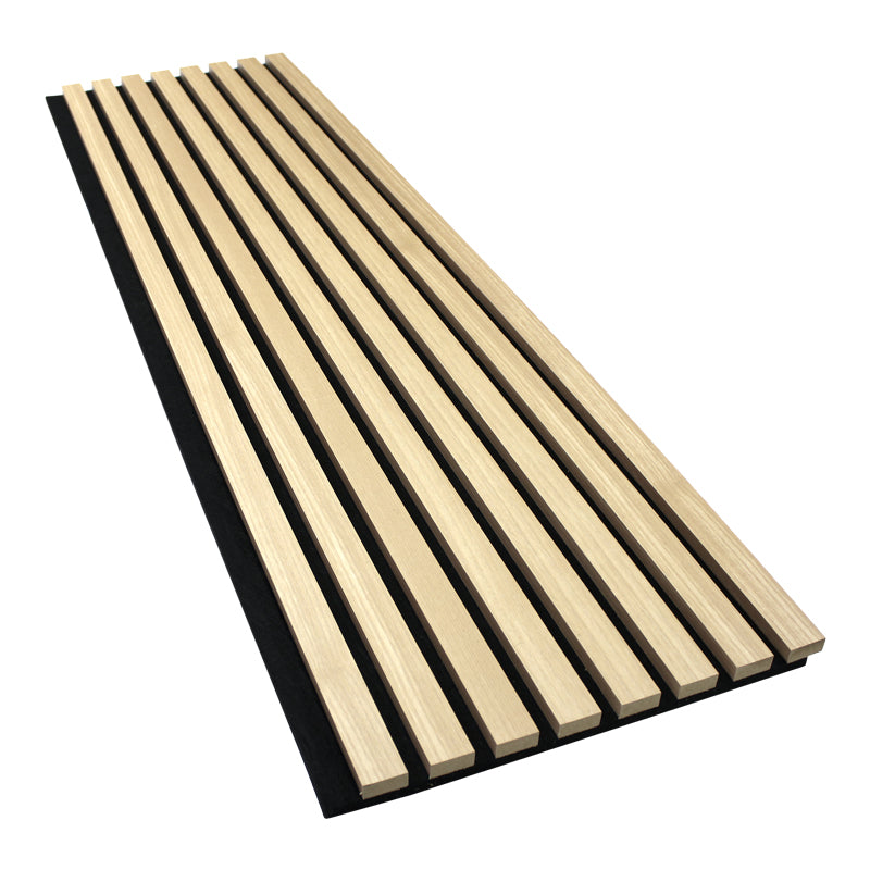 Apart from serving a functional purpose, these White Oak Acoustic Panel Wood Paneling, Siding for Walls and Ceilings are aesthetically pleasing and enhance the look of your room. This is a light oak with subtle grain patterns and comes with an black felt backing which goes better with lighter colored interior design schemes. Consider installing light oak Panel walls to add texture and visual interest to the walls. This can create a cozy and inviting atmosphere in living rooms, dining areas, or bedrooms.