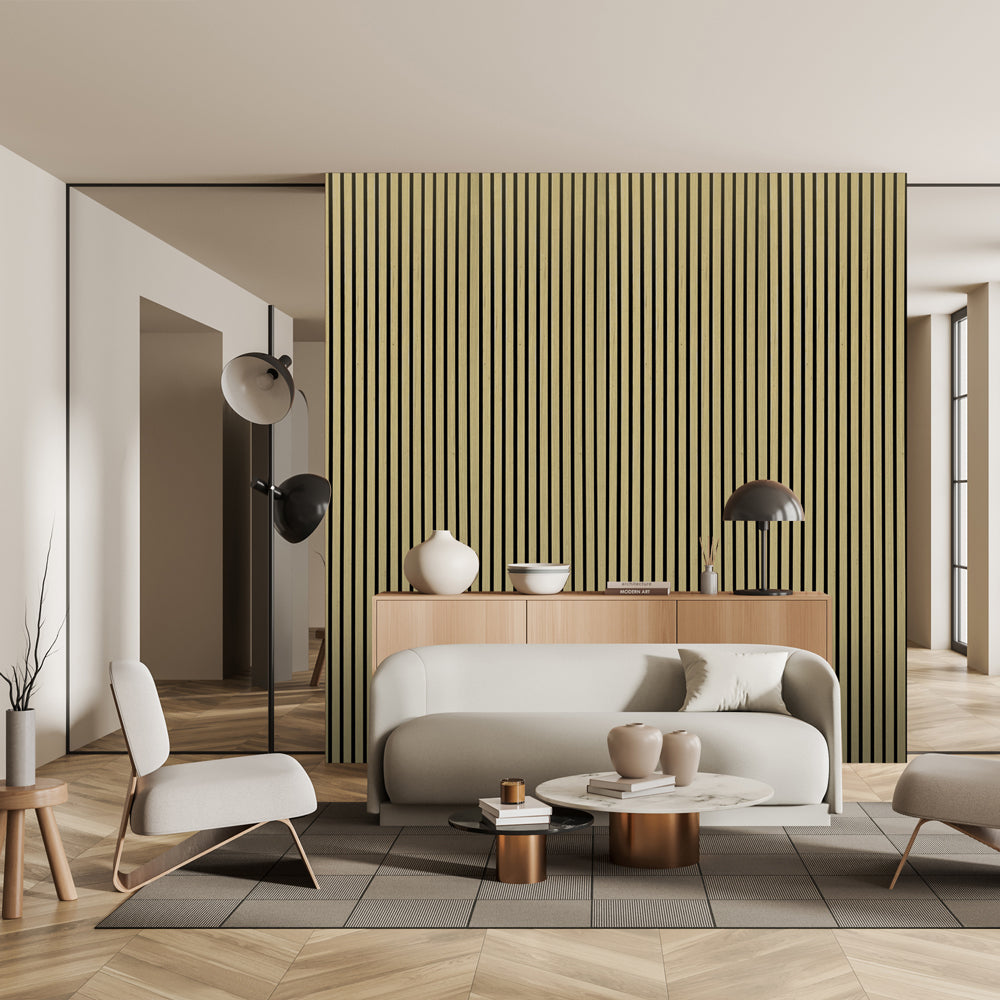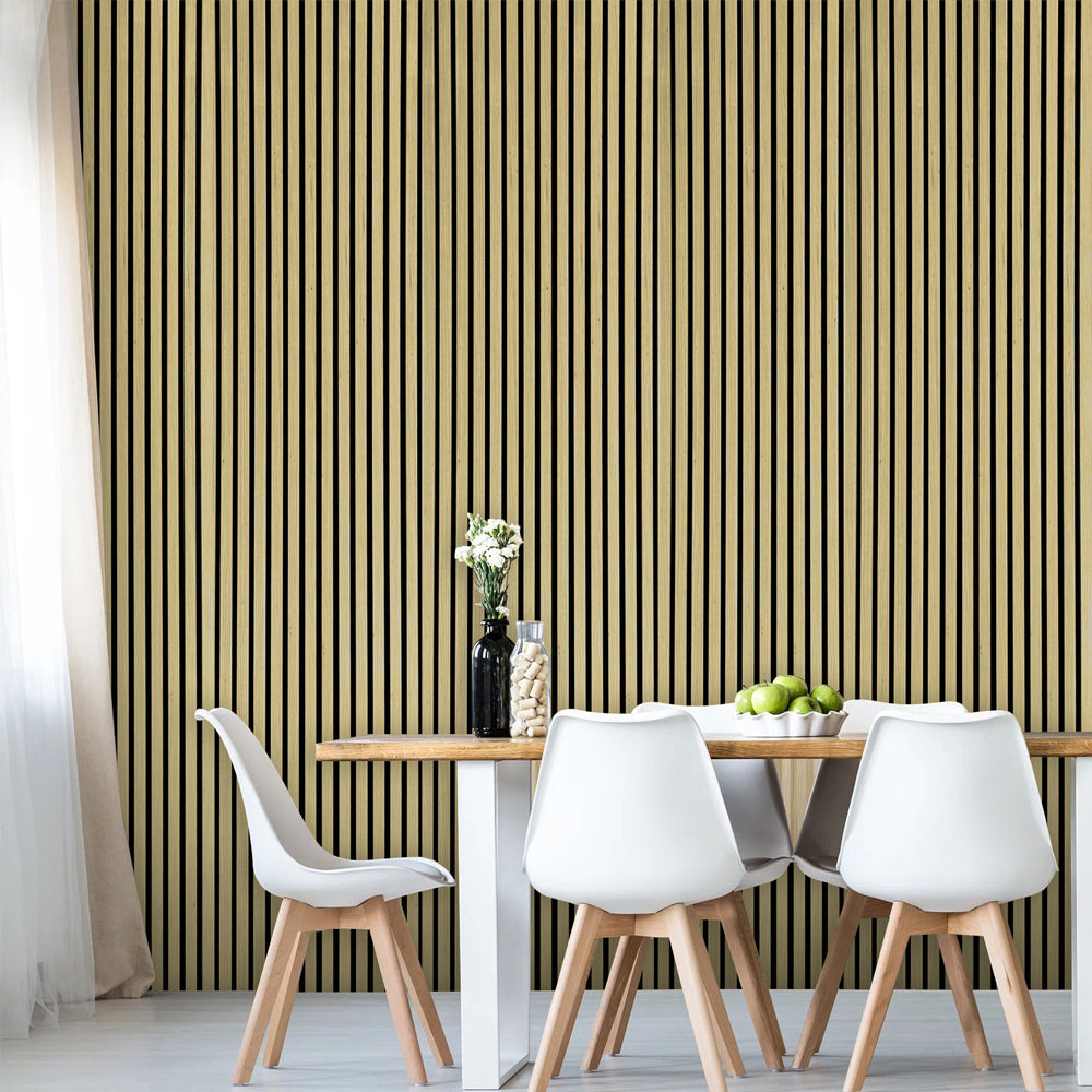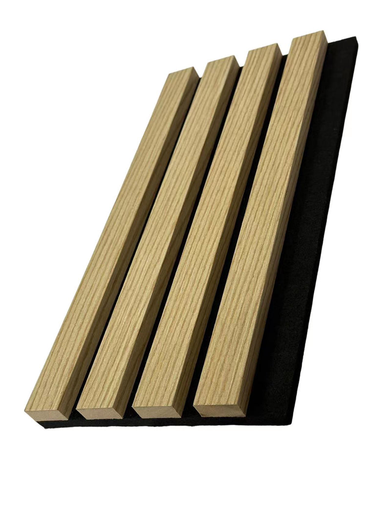 From our line of real wood veneer panels, these premium White Oak Acoustic Wall Panels Real Wood Veneer Three-Sided Panels are constructed from premium three-sided wood veneer Panels and acoustic felt backing. Designed to enhance both the aesthetic appeal and the acoustic performance of the room. The wood veneer Panels create a visually appealing 3D texture on the wall surface while also helping to scatter and absorb sound waves. Enjoy the best in acoustic performance and the most luxurious Panel panels on the market.