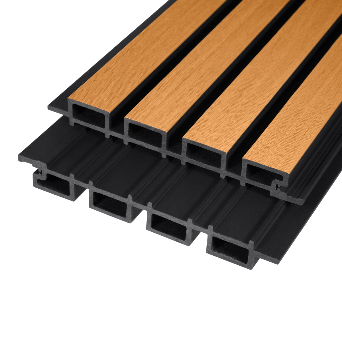 Wide 4-Strip Copper Teak with Black Gap Composite Siding Panels – 1.5" Slats for Exterior Wall Cladding