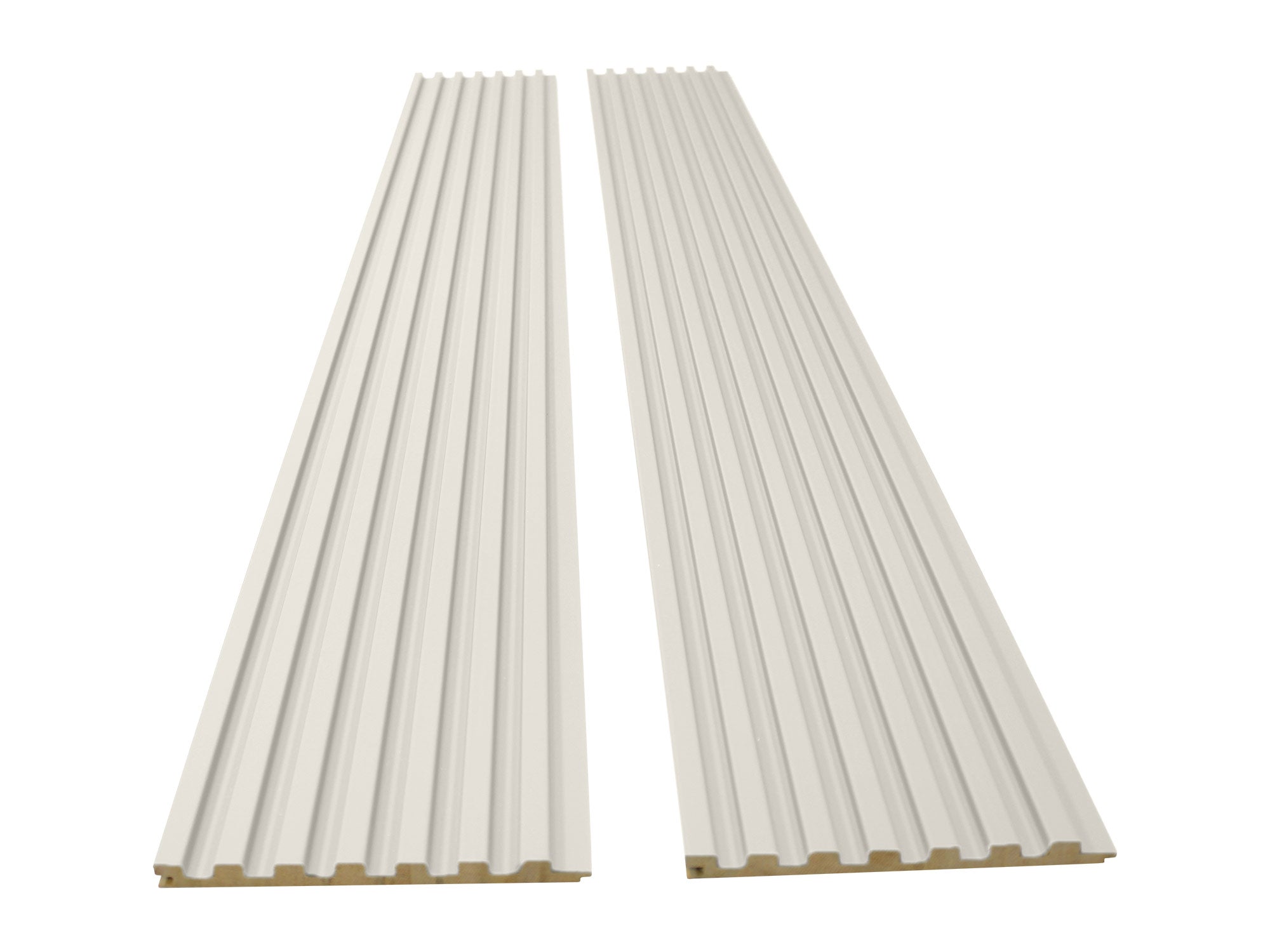 Presenting our Pure-White Panel Wood Panels for Walls. From our line of satin solid colored wall paneling, constructed from solid wood wrapped in a heavy-duty solid color veneer finish. Featuring 7 Panels per plank and thin/low-profile ridges for a subtle 3D Panel effect. This is a wonderful choice for for home improvement and renovation projects.