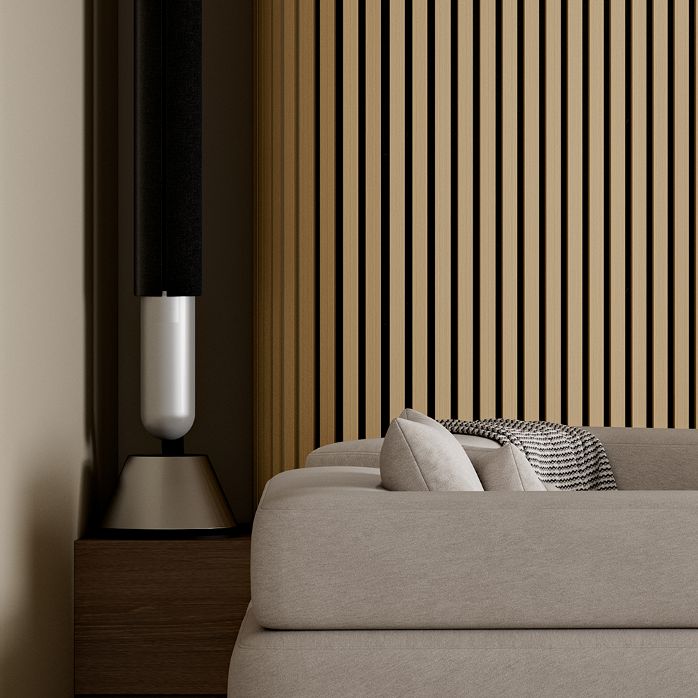 The White Oak finish offers a clean, bright wood tone that works beautifully in contemporary, minimalist, coastal, or transitional spaces. Its flexible structure and premium materials make it a standout choice for anyone looking to combine natural texture with modern acoustic function.