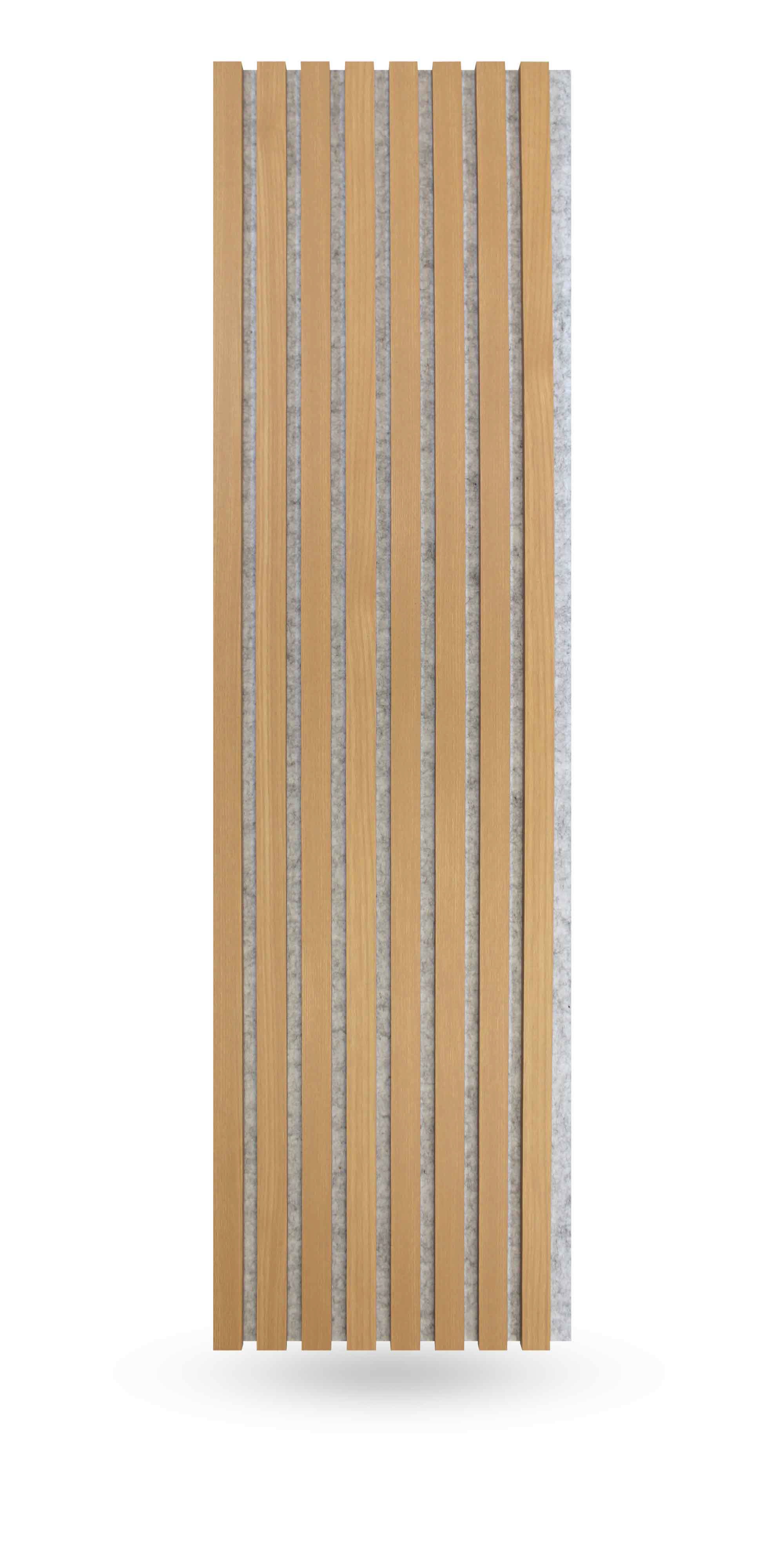 Natural Oak Acoustic Slat Wood Paneling for Soundproofing Walls, White Felt Backing (94" x 12")